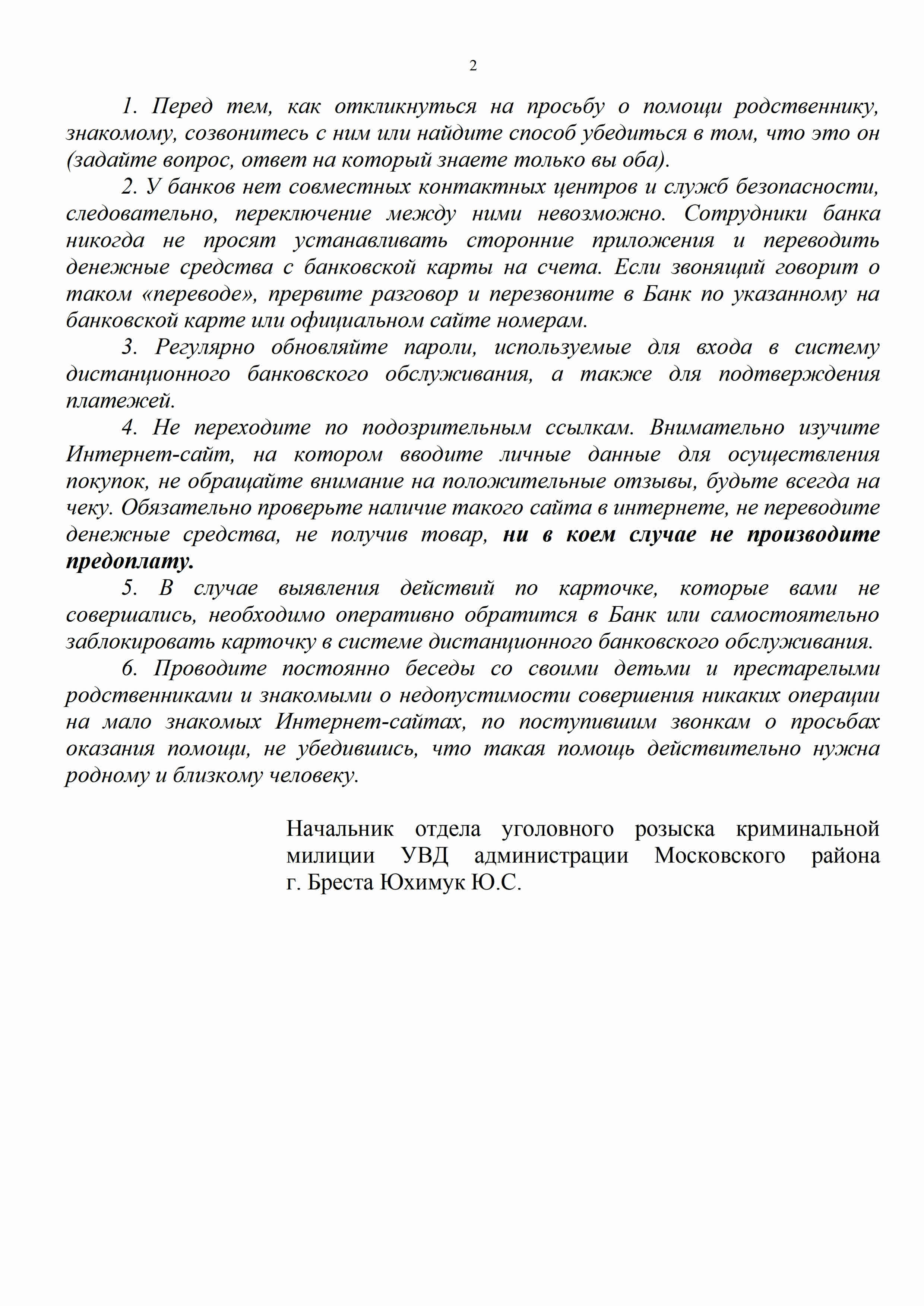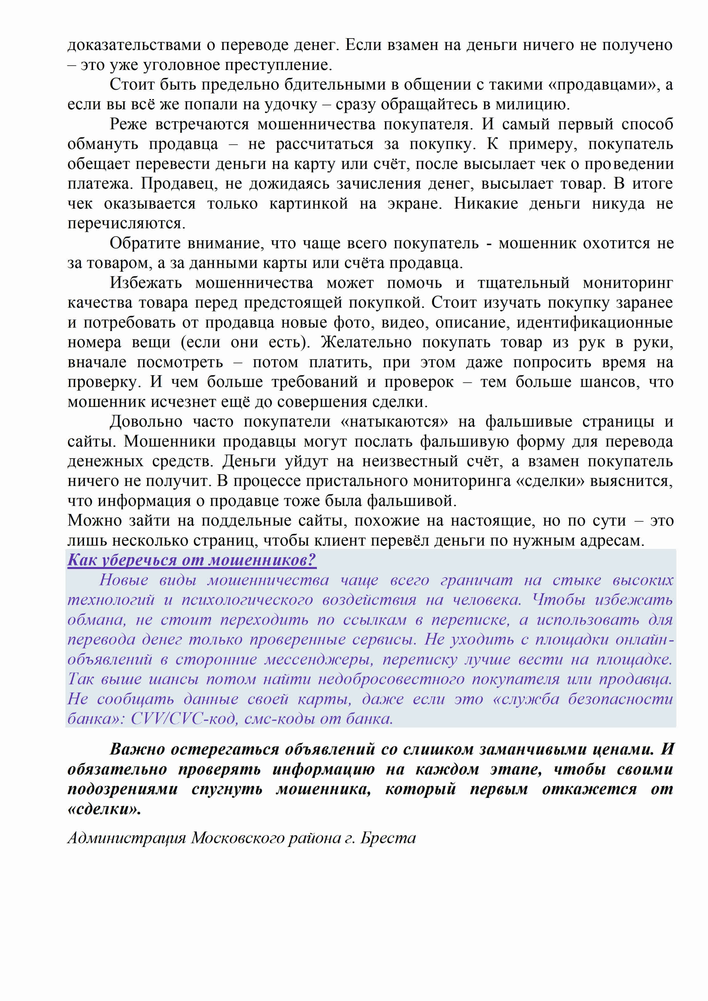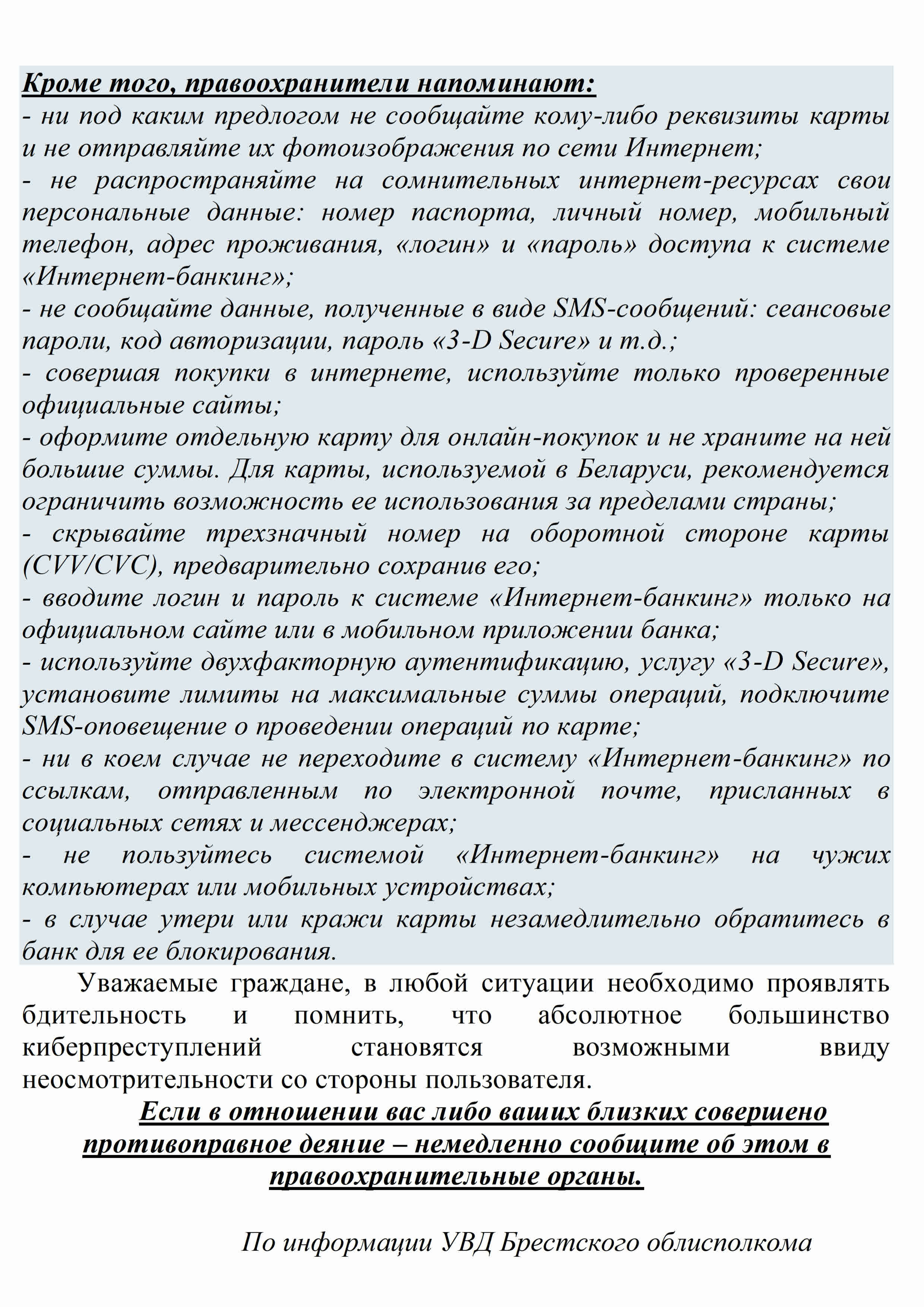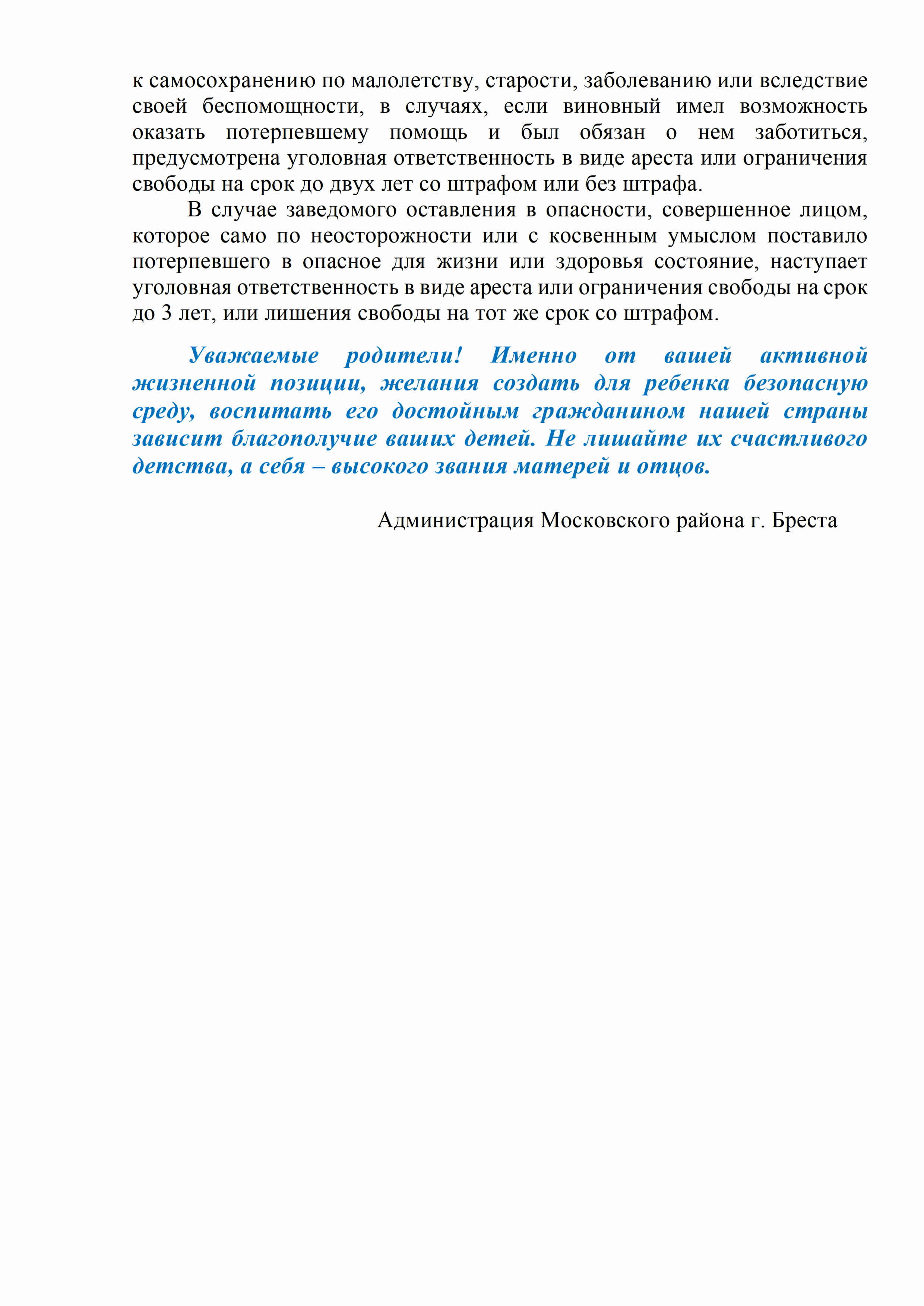 Администрация Московского района г.Бреста информирует всех законных представителей (родителей) несовершеннолетних о том, что в целях профилактики и предупреждения преступлений против половой неприкосновенности и половой свободы несовершеннолетних в мессенджере Telegram функционирует анонимный чат-бот «Помощь» для оказанияпомощи несовершеннолетним, ставших жертвами преступлений сексуального характера.