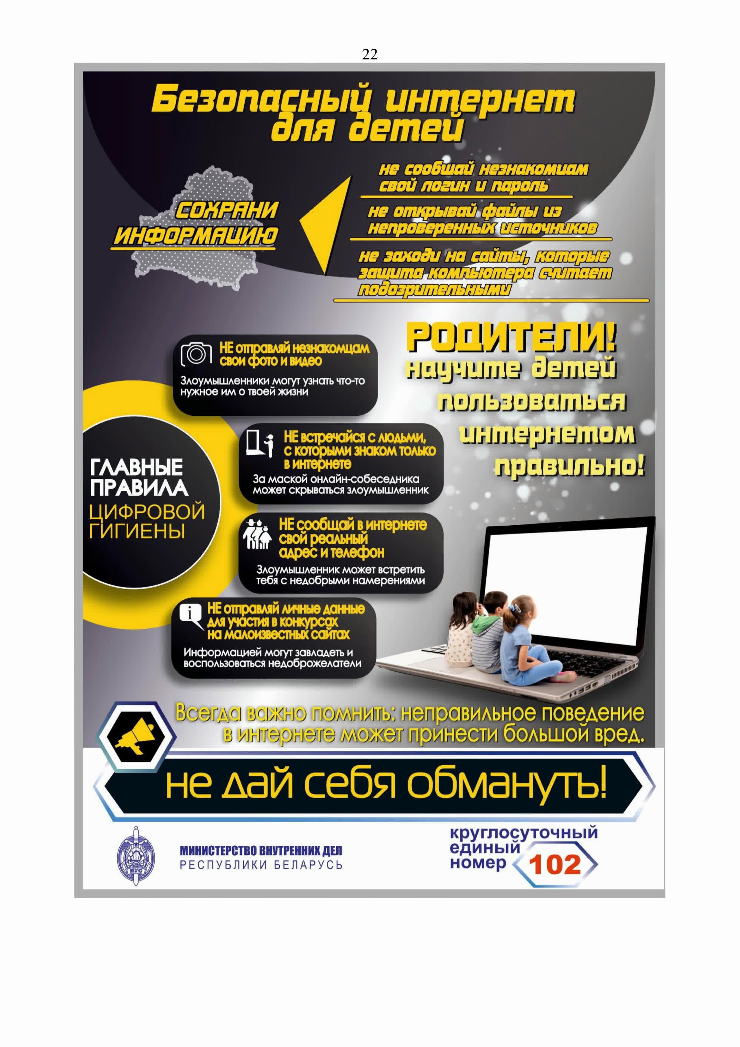 Кроме того, на территории Республики Беларусь функционирует интернет-портал kids.pomogut.by направленный на получение полезной информации, онлайн-консультирования, в том числе в рамках работы «горячей линии» и иной помощи по вопросам защиты детей от сексуального насилия и эксплуатации.