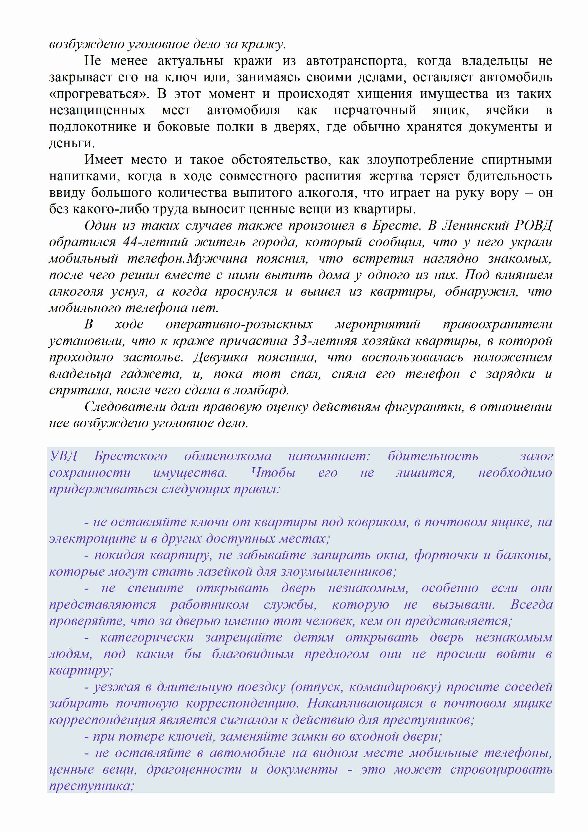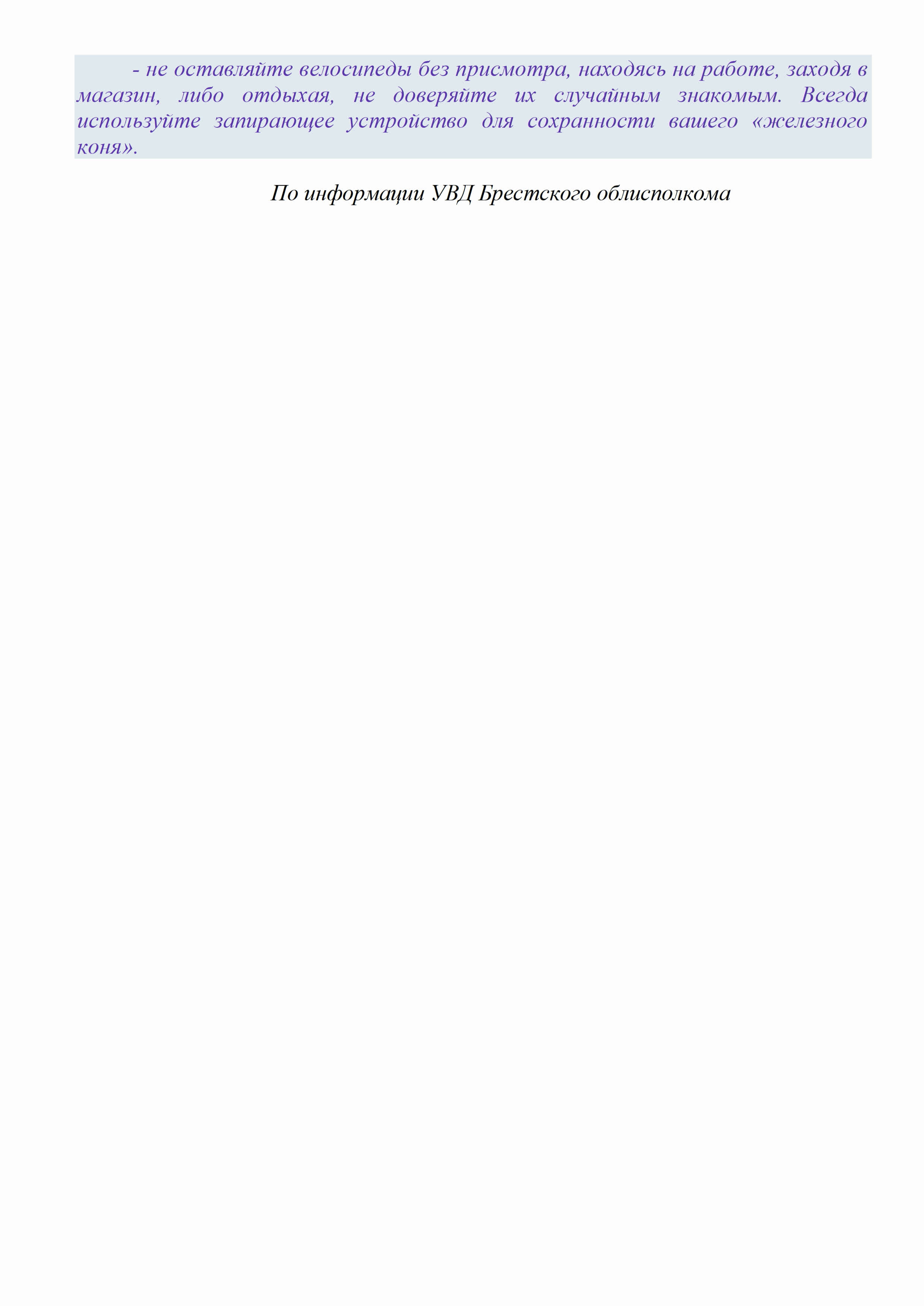 По информации УВД Брестского облисполкома